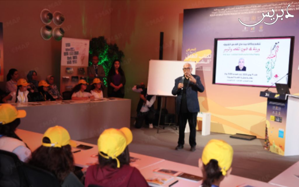 نظمت وكالة بيت مال القدس الشريف يوم الأحد بالدار البيضاء، ضمن فعاليات الدورة الثالثة للمعرض الدولي لكتاب الطفل والشباب، ورشة في فنون الرسم والخط العربي أطرها الخطاط المغربي والفنان التشكيلي محمد قرماد.
