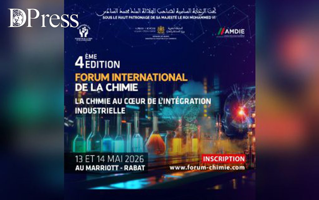 La 4ème édition du Forum International de la Chimie se tiendra les 13 et 14 mai 2026 à Rabat, sous le thème “La chimie, au cœur de l’intégration industrielle”, à l’initiative de la Fédération de la Chimie et de la Parachimie (FCP).